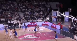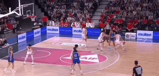 但一人無法分飾兩角,李月汝也沒法同時兼顧擋拆雙人組,法國中鋒同樣有外線投射,她剛分神關注外拆的中鋒,對方後衛就甩開防守人,長驅直入。