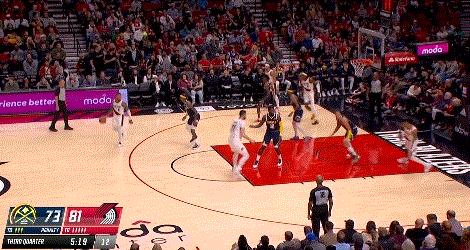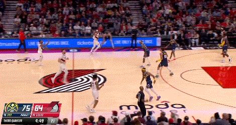 當第三節還剩下7分53秒,西蒙斯接到利拉德的傳球,在距離三分線兩米的遠的位置上面對身前的波普和追防的穆雷直接選擇幹拔,籃球空心入網。開拓者憑藉這一記三分球取得了從第一節之後的首次領先。此刻,沒人知道接下來西蒙斯將會下起一場三分雨。接下來,西蒙斯再次命中2記三分球,害得掘金主教練邁克·馬龍立即叫了暫停,想要暫緩西蒙斯的進攻手感。