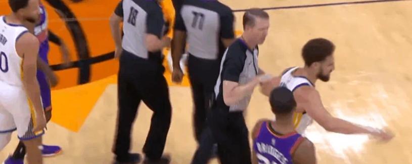 不慣着的裁判,直接吹出了第二次技犯,將克萊-湯普森罰出球場!