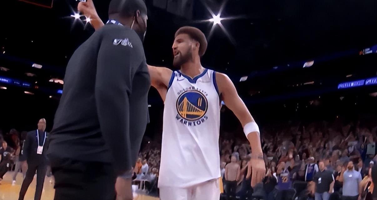 值得一提的是,勇士大將克萊-湯普森,在被吹第一次技術犯規後,明顯不服氣。