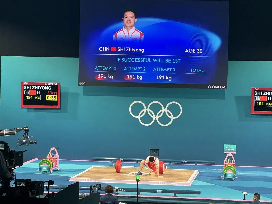 石智勇在巴黎奧運會男子73公斤級決賽中因傷三次挺舉失敗。