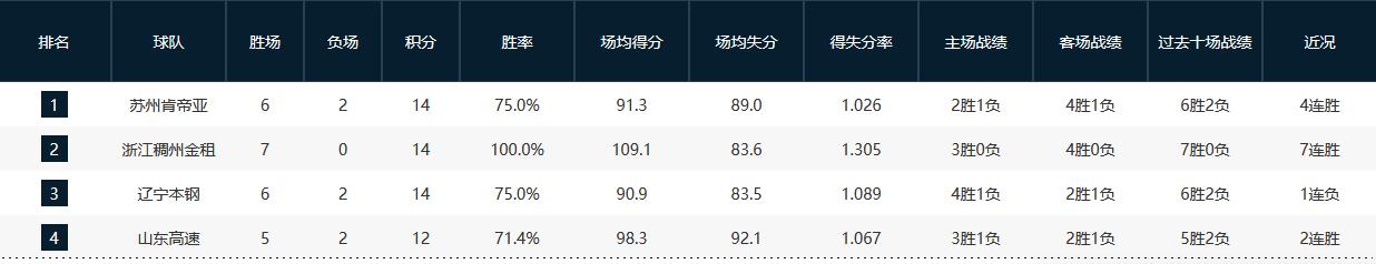 現在的CBA聯賽排行榜,排名前四的球隊分別是江蘇、浙江、遼寧和山東。