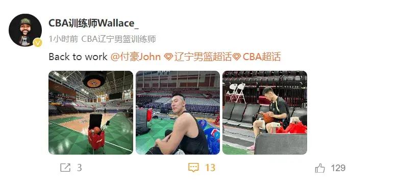 中午12點,遼寧男籃訓練師華萊士罕見更新其個人社交媒體,用“Back to work”來宣告復工,而接受他特訓的不是別人,正是球隊休賽期,纔剛剛以頂薪續約的付豪,以及用郭艾倫換來的新援王嵐嶔。付豪在休賽期幾乎沒有任何休息,前期跟隨遼寧男籃參加各類奪冠慶典,之後便飛赴美國接受特訓,特訓歸來後又收到中國男籃的徵召,跟隨國家隊在雲南海埂基地和北京二七廠訓練基地進行特訓,一直到最近纔回歸球隊。