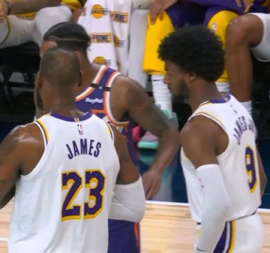 比賽第二節,詹姆斯與20歲生日的布朗尼同時登上賽場,成爲NBA歷史上首次同臺作戰的父子組合。