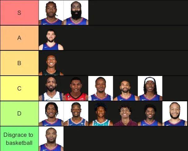 之前,有快船媒體給自家球員評過等級,其中小卡和哈登是S級,給老塔克的評級是“獨一無二”的: