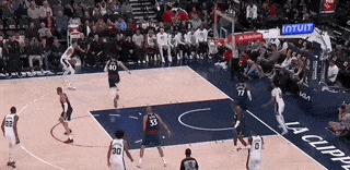 從另一個角度來說,練出三分和外線面框,也是爲了更好地打到籃下。而現在,即使文班的外線效率奇低,對手依然不敢放給他太多空間。就像這一回合,文班一接球,哈登就貼臉(順帶連曼恩也過來圍觀),文班順勢絲滑轉身,就給索汗創造了喫餅機會。
