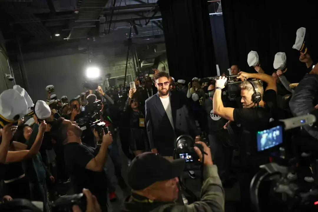 從停車場到更衣室,勇士約400名工作人員站球館通道兩側,向克萊脫帽致敬。