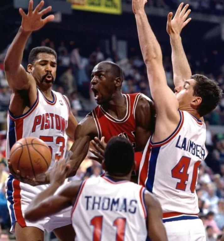 衆所周知,當年喬丹在90年代的NBA可謂叱吒風雲,無法阻擋,因此,喬丹的死對頭活塞隊爲了限制喬丹肆無忌憚的得分,採用了無所不用其極的防守策略,這個堪稱野蠻的防守方式,在當時被稱爲“喬丹法則”,套用活塞主教練查克-戴利的一句話,每一次對喬丹的防守我都要見血!那麼,當年聯盟各支球隊對於喬丹的防守有多狠呢?今天我們就用圖片感受一下吧!