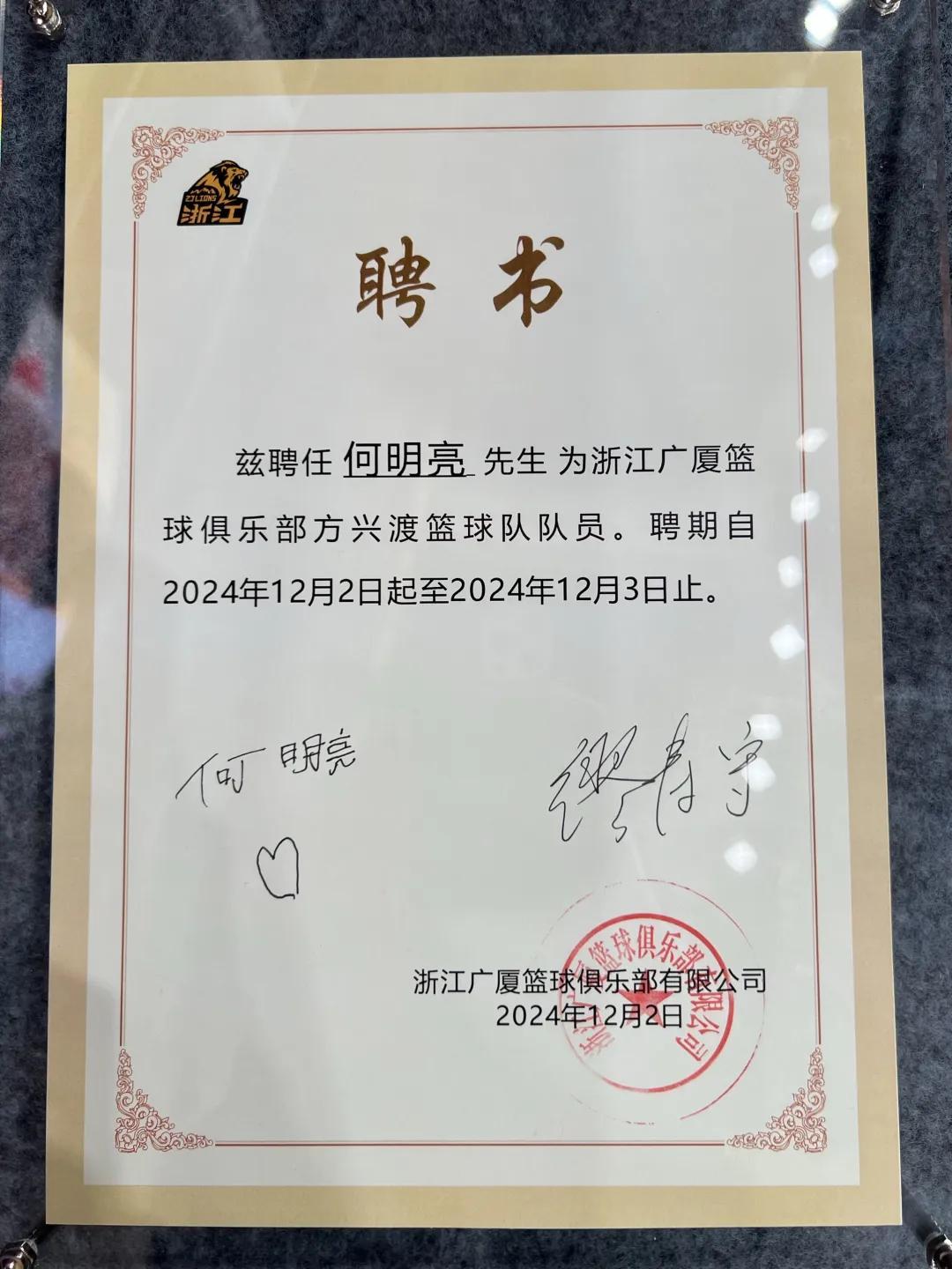 昨天,浙江廣廈幹了件大事兒:與何明亮簽訂了一份“CBA球員一日合同”,贈予他專屬98號球衣,邀請他現場觀看浙江主場與吉林的比賽。