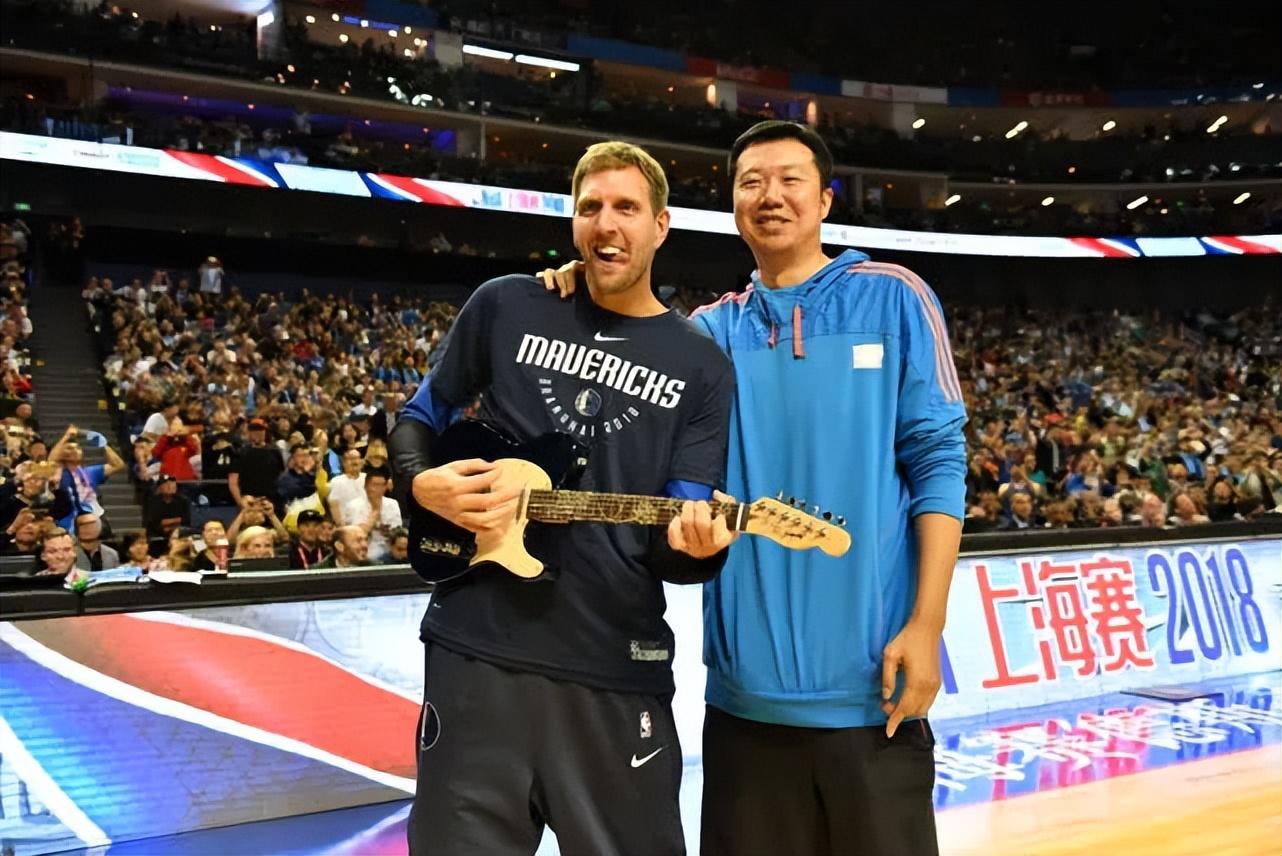 王治郅送給了諾維茨基一把吉他,諾天王興奮地在現場就彈了起來。
