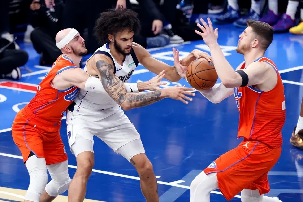 逼迫對手失誤和降低對手命中率,這兩件事在聯盟裏大多數時候很難同時完成。一旦你防得激進,你總會有被漂亮的傳球打穿的時候。如果你不想給對面好的出手機會而防得保守,那對手的失誤和你的搶斷數一定高不到哪兒去。但雷霆不是普通的防守球隊,東契奇在這場比賽裏面對的也不是一條普通的防線,而是一羣極富侵略性的狼。我們可以順着看一看雷霆這幫側翼和後衛的名字:謝伊·吉爾吉斯-亞歷山大、杰倫·威廉姆斯、呂茲岡·多爾特、阿萊克斯·卡魯索、卡森·華萊士、阿倫·威金斯和以賽亞·喬。