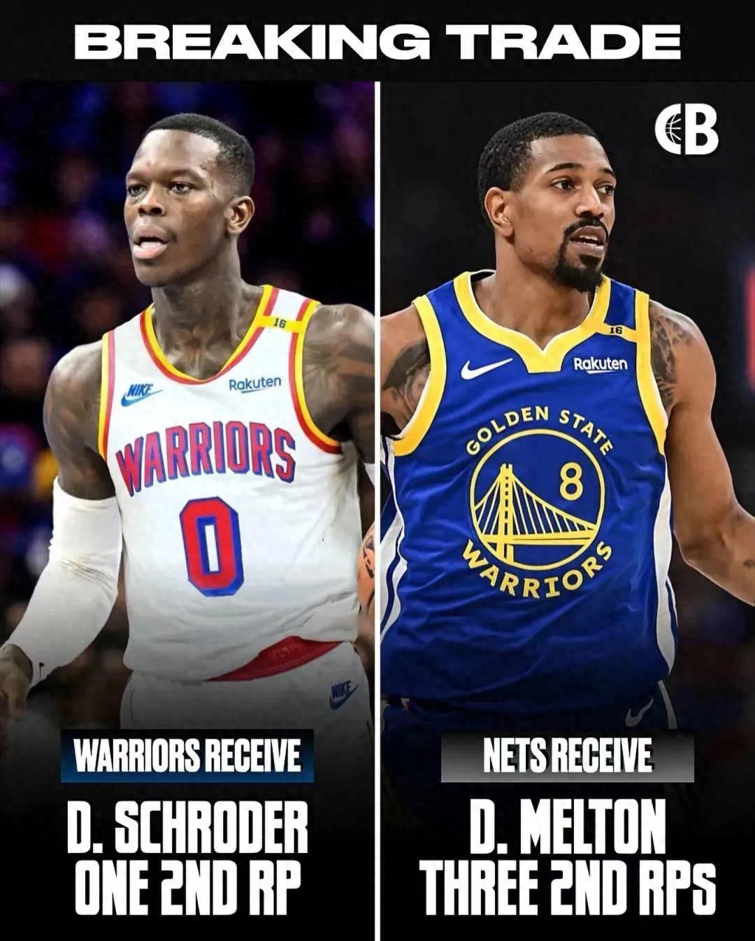 勇士與籃網將達成交易,具體方案是:勇士送出梅爾頓與3個次輪籤,從籃網交易得到施羅德與1個次輪籤。