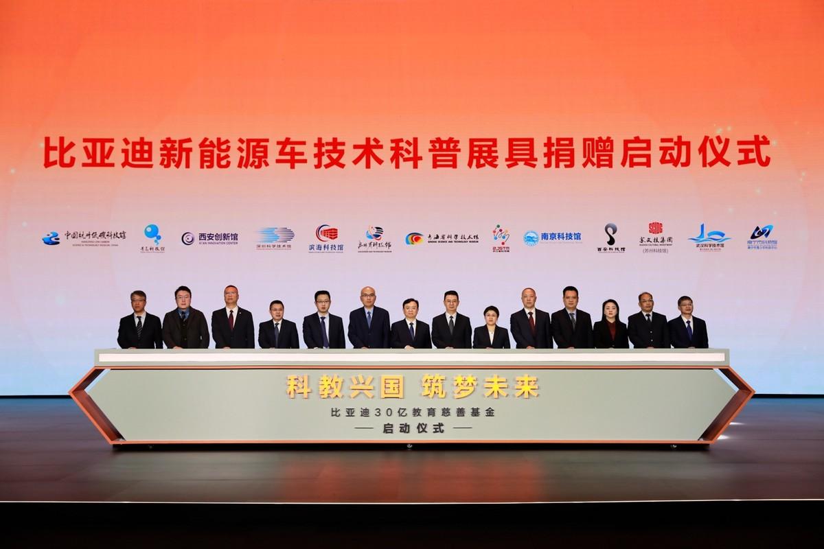 12月30日,比亞迪在深圳總部舉行了30億教育慈善基金啓動儀式,比亞迪股份有限公司董事長兼總裁王傳福與來自全國的35所高校代表及28所科技館、博物館代表共同啓動比亞迪30億教育慈善基金捐贈。