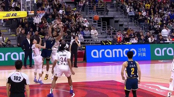 籃下跳搶在一起將球拍出,徐昕搶到球后殺入,面對薩林傑拋投出手命中。