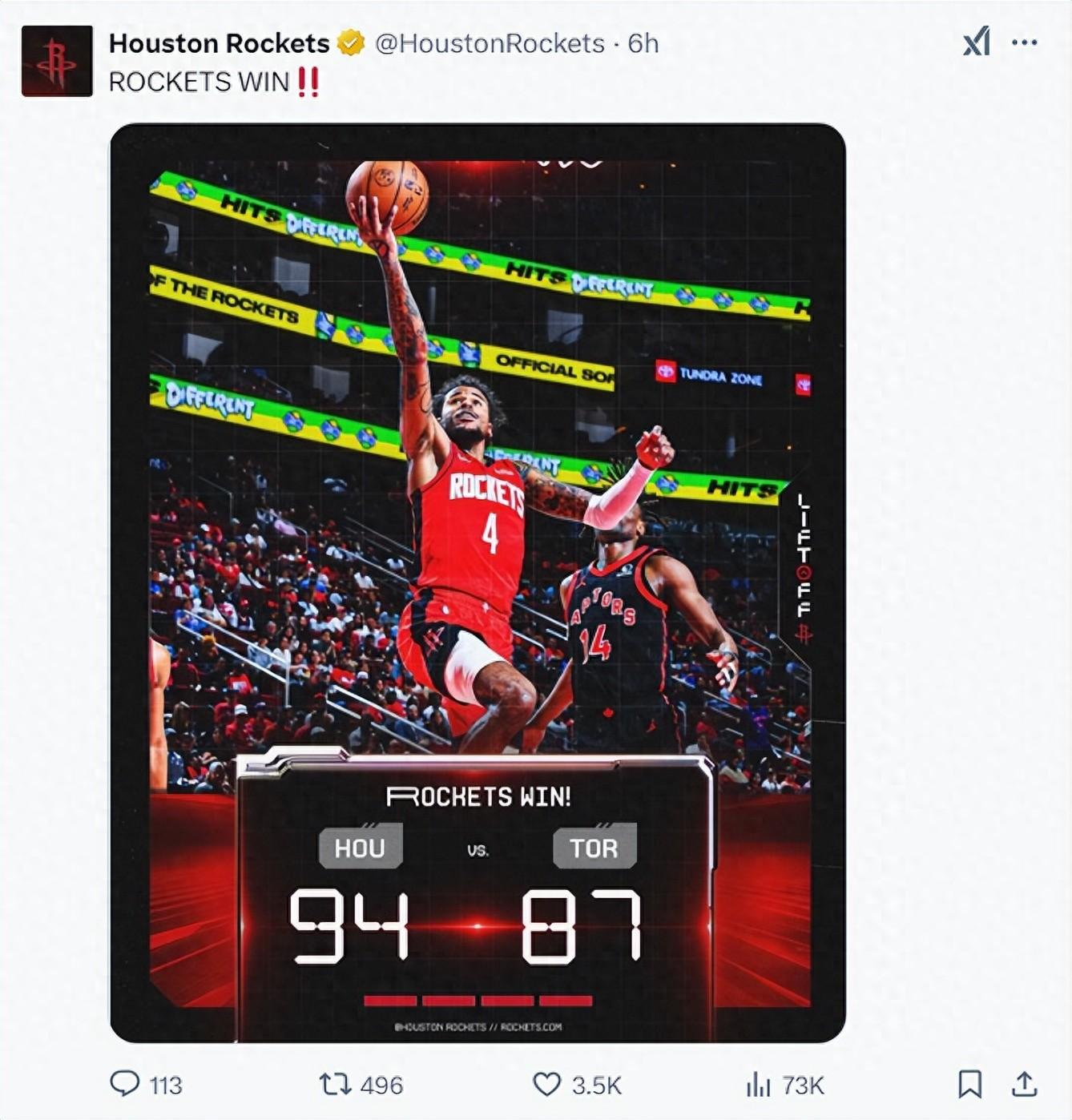 火箭官方還致謝了蘭代爾,因爲申京傷退、亞當斯輪休他得到了25分鐘的登場時間,8中4拿到11分10籃板1助攻1蓋帽,他是此役的超級奇兵。
