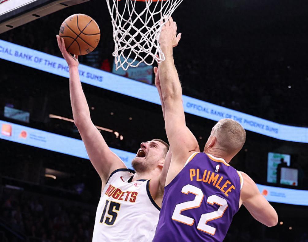 全場比賽約基奇28分鐘打卡,13投11中拿到26分11籃板9助攻;布克19中8拿到24分7籃板3助攻。
