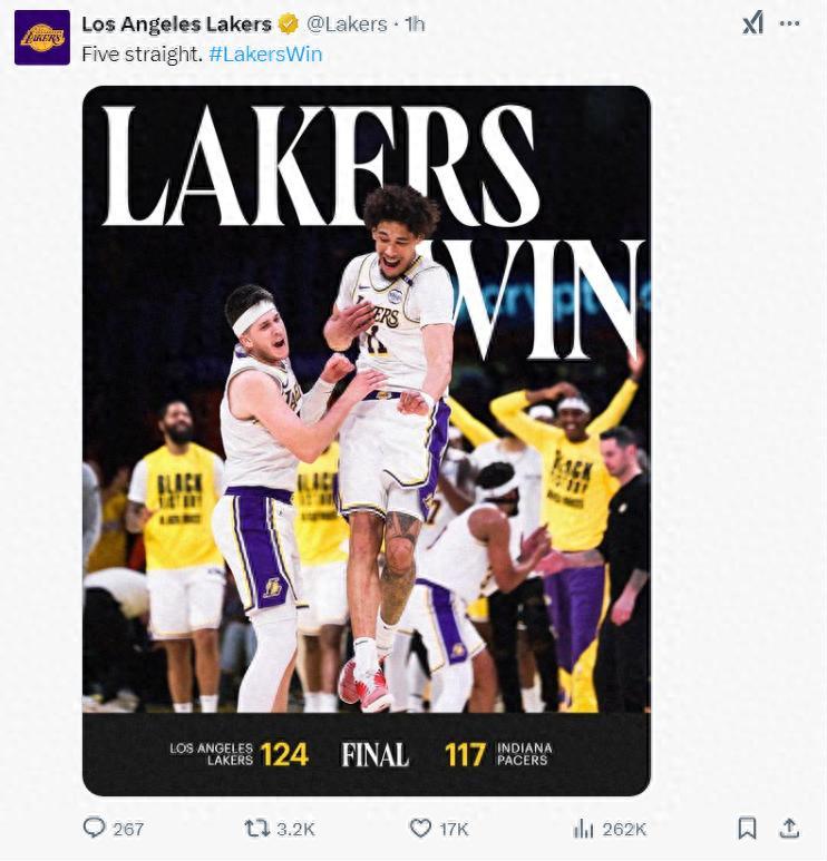北京時間2月9日,湖人124-117擊敗步行者拿到五連勝,隨着火箭的六連敗湖人已經升至西部第四。更爲恐怖是這場比賽詹姆斯、東契奇、馬威都不打,換言之裏夫斯單核帶隊拿到勝利,首節湖人一度領先22分之多。