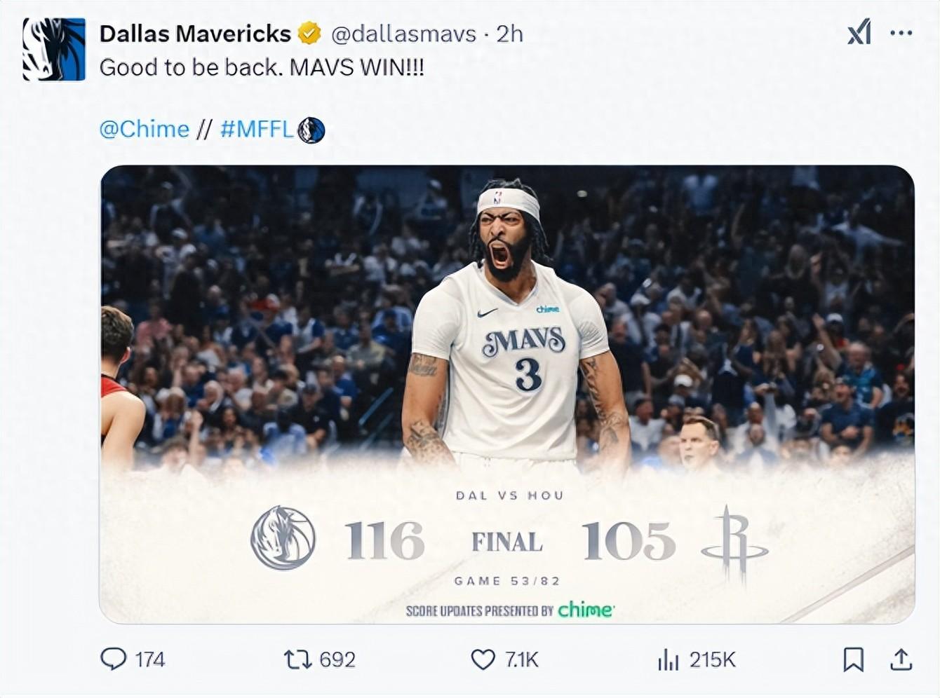 北京時間2月9日,達拉斯獨行俠主場116-105大勝休斯頓火箭拿到二連勝。這場比賽獨行俠首節就領先13分,半場打完拉開到17分,第三節火箭縮小了7分,末節獨行俠降節奏鎖定勝局。安東尼-戴維斯獨行俠首秀拿到26分16籃板7助攻3蓋帽。