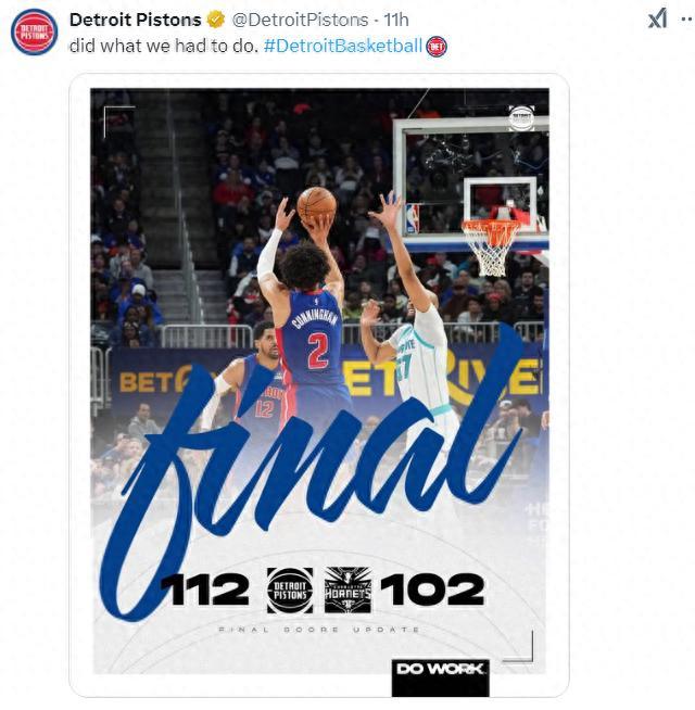 坎寧安手感不佳17中7拿到19分12助攻10籃板1搶斷1蓋帽5失誤,他作爲這支年輕活塞的領袖運籌帷幄,身高6尺7的他打一號位優勢很明顯。
