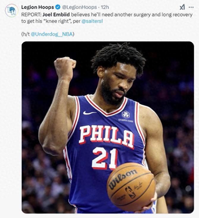 實際上恩比德剛剛從左膝腫脹的傷勢中復出,他1月5日傷停後直到2月5日才復出,剛剛打了三場比賽就表示今夏可能還要手術。他在場上還是一碰就倒,各種倒地被噴。