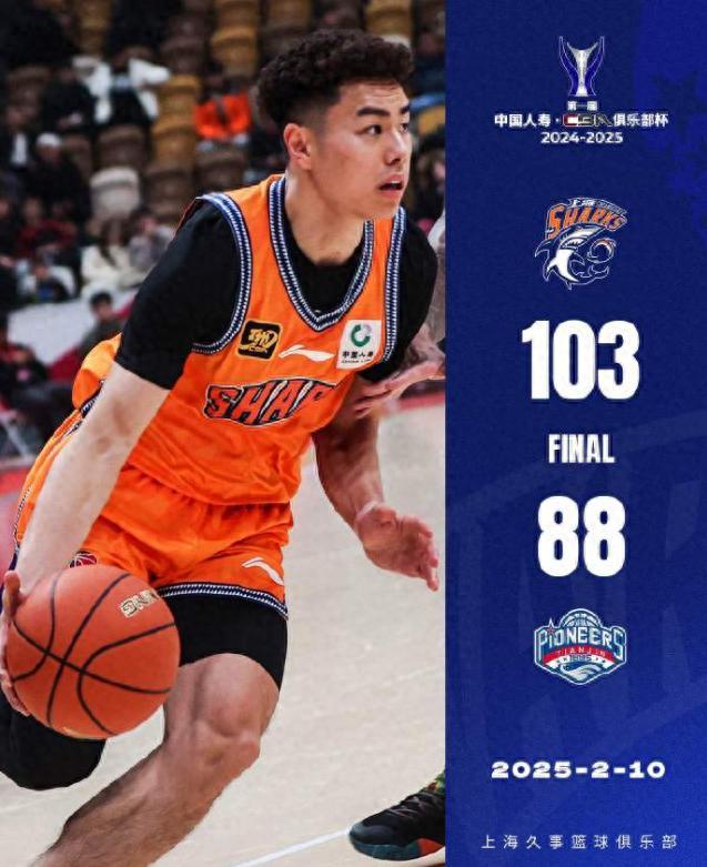 北京時間2月10日,CBA俱樂部杯半決賽,上海男籃103-88大勝天津男籃晉級四強,這場比賽上海一開始就取得領先,首節領先10分,三節打完領先15分,最終末節早早進入垃圾時間。