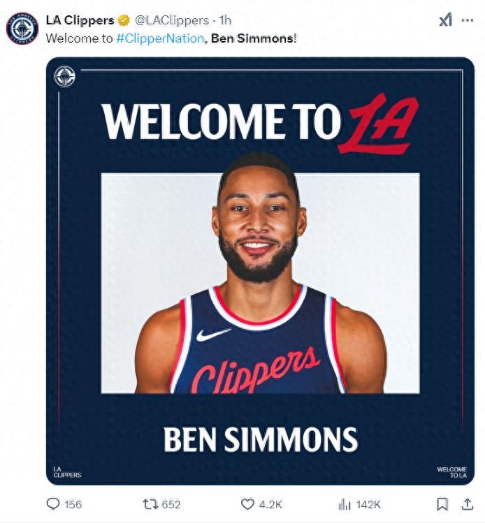 根據快船記者勞裏-穆雷的說法,本-西蒙斯在被買斷後是以110萬的薪水加盟快船,他將代表快船打完本賽季。