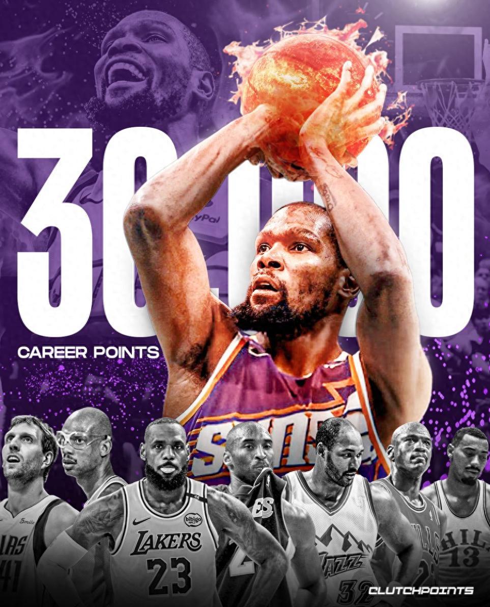 這場比賽杜蘭特完成30000分里程碑已經創造多項紀錄:1.杜蘭特完成個人生涯30000分;