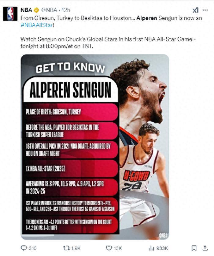 NBA全明星週末就這樣結束了,三場比賽合計的時間可能連正常比賽一場都不如,而且缺乏競爭性,賽後無數的球員、媒體都在吐槽。火箭媒體最窩火,賽前NBA官方預熱申京生涯首次全明星,從土耳其吉雷松-貝西克塔斯-休斯頓,如今他已經是全明星球員,將在全球直播中登場。