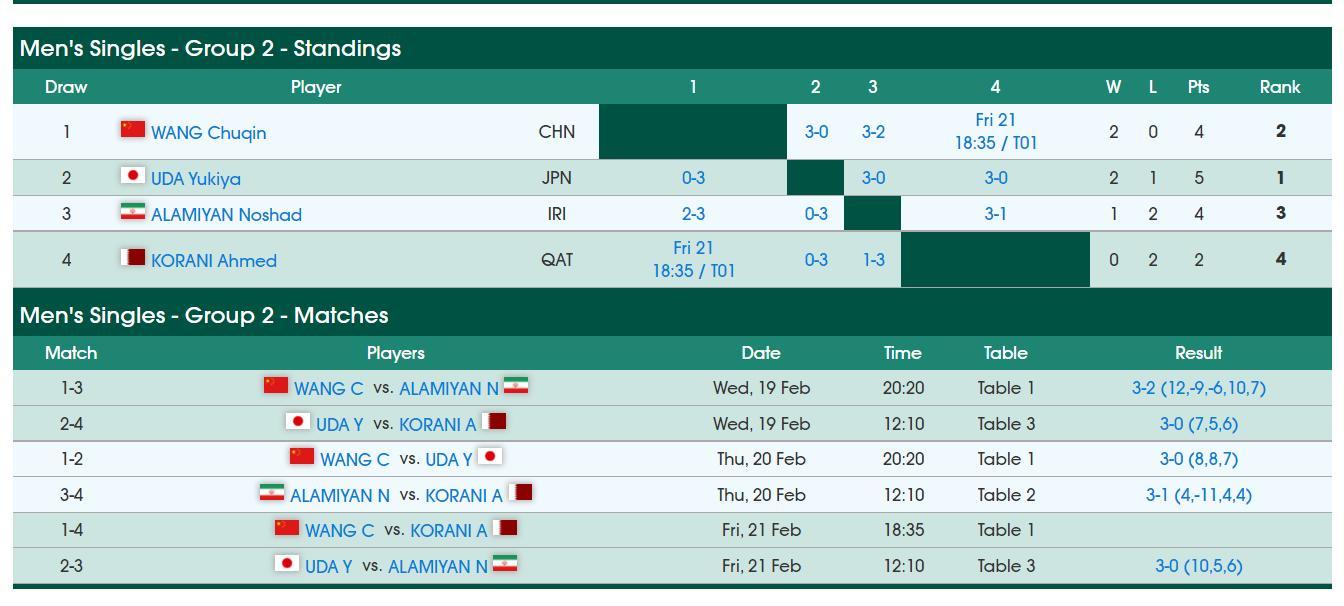 此役之前的兩場比賽,王楚欽3-0宇田幸矢 【11-8,11-8,11-7】 ;王楚欽3-2諾莎德·阿拉米揚 【14-12,9-11,6-11,12-10,11-7】 ,打阿拉米揚那一場還是很驚險的,王楚欽在1-2落後的情況下逆轉,