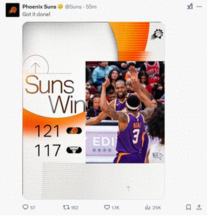 北京時間2月23日,菲尼克斯太陽121-117險勝芝加哥公牛結束漫長的4連敗,這場比賽太陽還是逆轉取勝,首節落後10分,在第二節打出40-28反超,下半場是拉鋸戰進入最後5分鐘杜蘭特、布克、比爾三巨合力艱難鎖定勝局。
