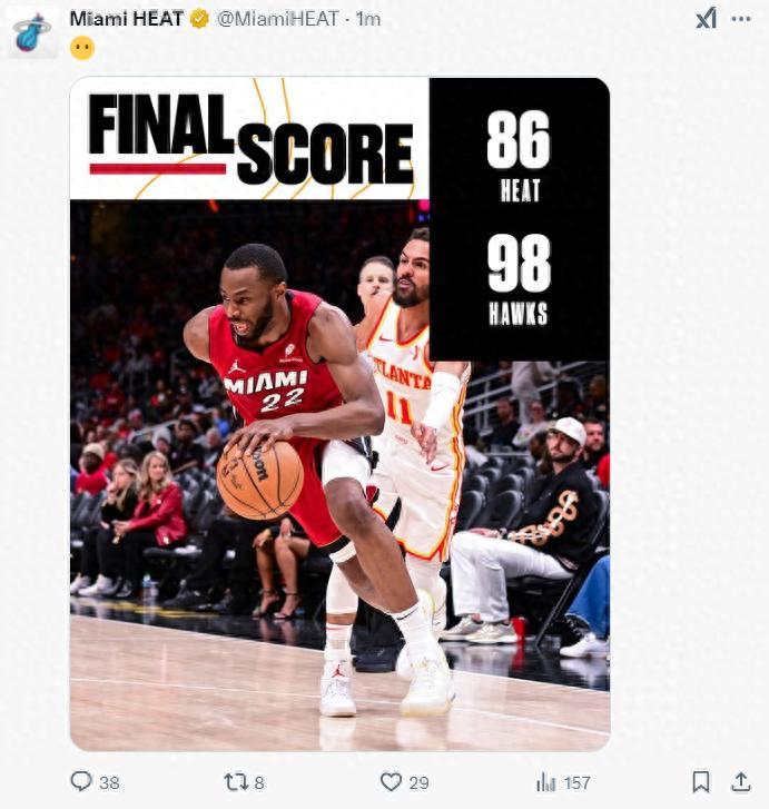 北京時間2月25日,NBA常規賽,邁阿密熱火以86-98不敵亞特蘭大老鷹遭遇三連敗,熱火掉至東部第九,老鷹升至東部第八。這也是安德魯-威金斯加盟熱火後第六場失利(1勝6負)。熱火從開場就被壓制,一場打鐵大戰熱火比老鷹還鐵不少,這樣的比賽不僅觀感差槽點更是不斷,威金斯算熱火唯一亮點了,但還是以輸球收場。