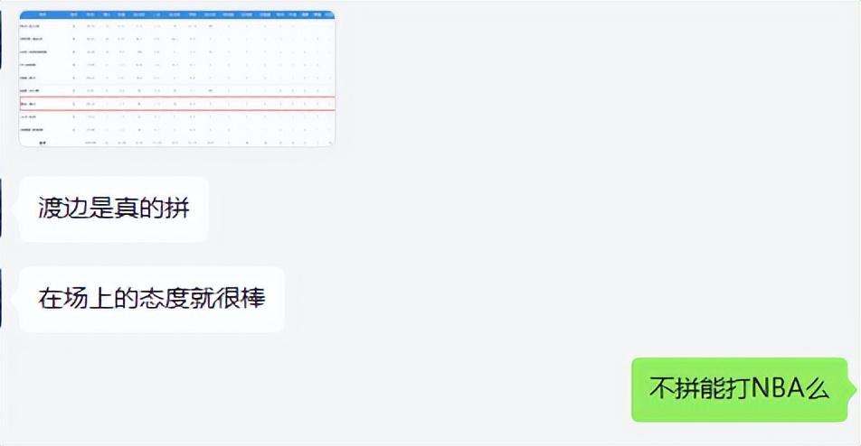 昨天在拉文和歐文的“聯手”下,他們還是輸給了公牛。賽後,一位兄弟給我發了這麼一條消息:“渡邊是真的拼,在場上的態度就很好!”