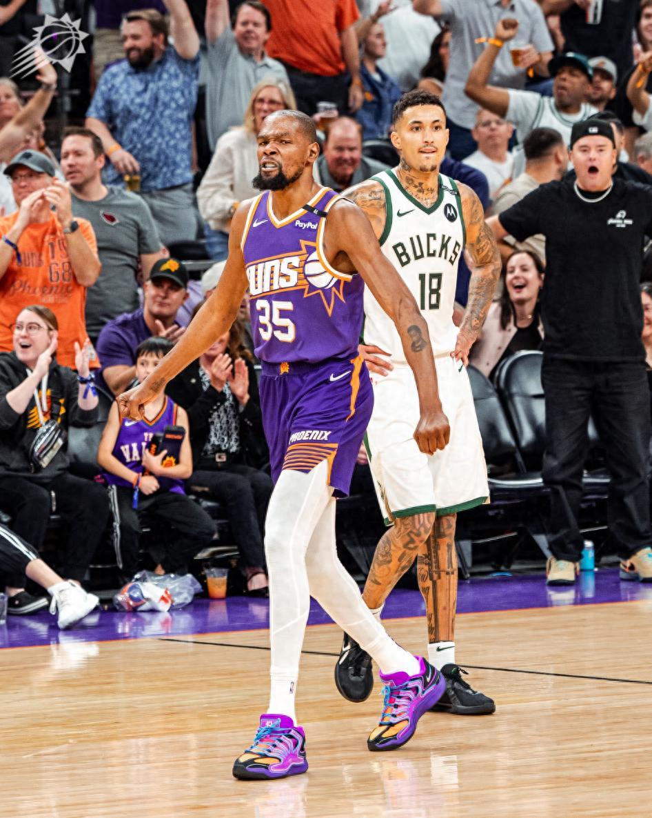 全場比賽,杜蘭特37分鐘,21中11,三分9中7,罰球10中9,拿到38分8籃板5助攻3蓋帽,命中率52.4%,三分命中率77.8%。布克19分12助攻(18中7+三分5中0)