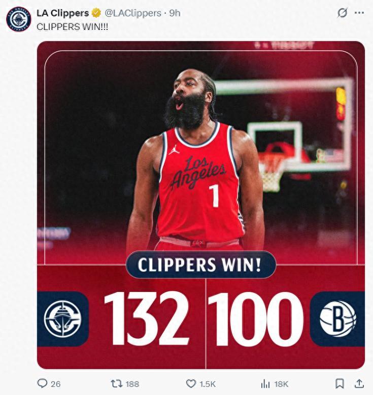快船132-100狂勝籃網,這場比賽後LAC穩住了西部第六的席位。在這場比賽之前斯蒂芬-庫裏在採訪中明確表態想要重返西部前六,勇士不想打附加賽,快船沒有一人去回應,但他們用行動證明快船也不想打附加賽。