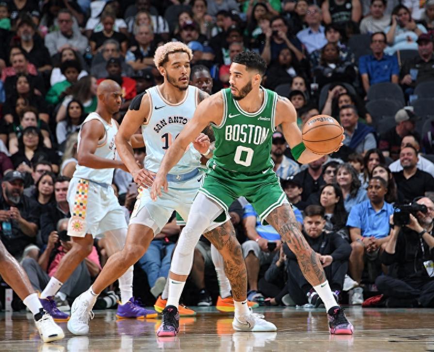 塔圖姆上半場19分鐘,10中5,三分4中1,拿到12分6籃板5助攻1蓋帽,看起來他的左腳踝真的沒有大礙,塔圖姆幫助球隊大比分領先馬刺。