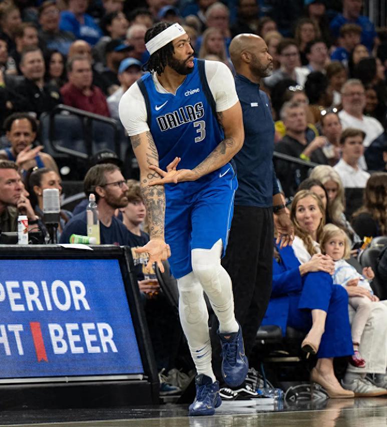 此役濃眉繼續出戰,之前的兩場比賽他雖然手感不佳但獨行俠就涉險過關,此役加福德復出了,濃眉的防守壓力更小,他開始到三秒區去拿分,首節7分鐘,3中2+罰球2中2拿到6分2籃板2助攻,美中不足是喫了兩個犯規,但獨行俠還是領先。