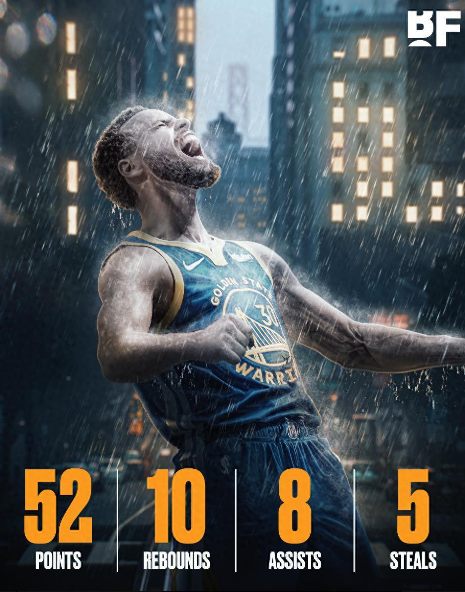 全場比賽,庫裏36分鐘,31中16,三分20中12,拿到50分10籃板8助攻5搶斷1蓋帽,命中率51.6%,三分命中率60%,