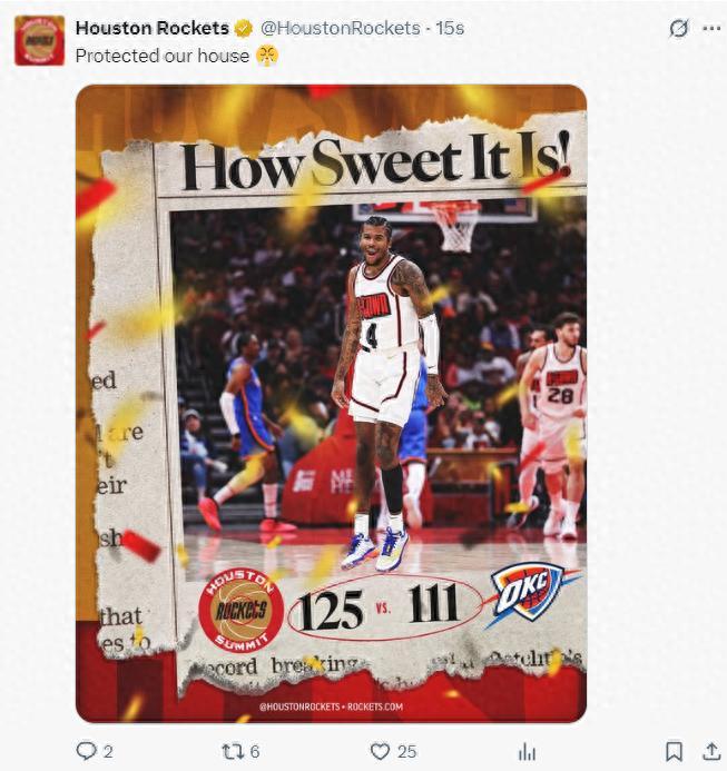 休媒:本賽季只有火箭隊至少連續兩場比賽擊敗騎士與雷霆。