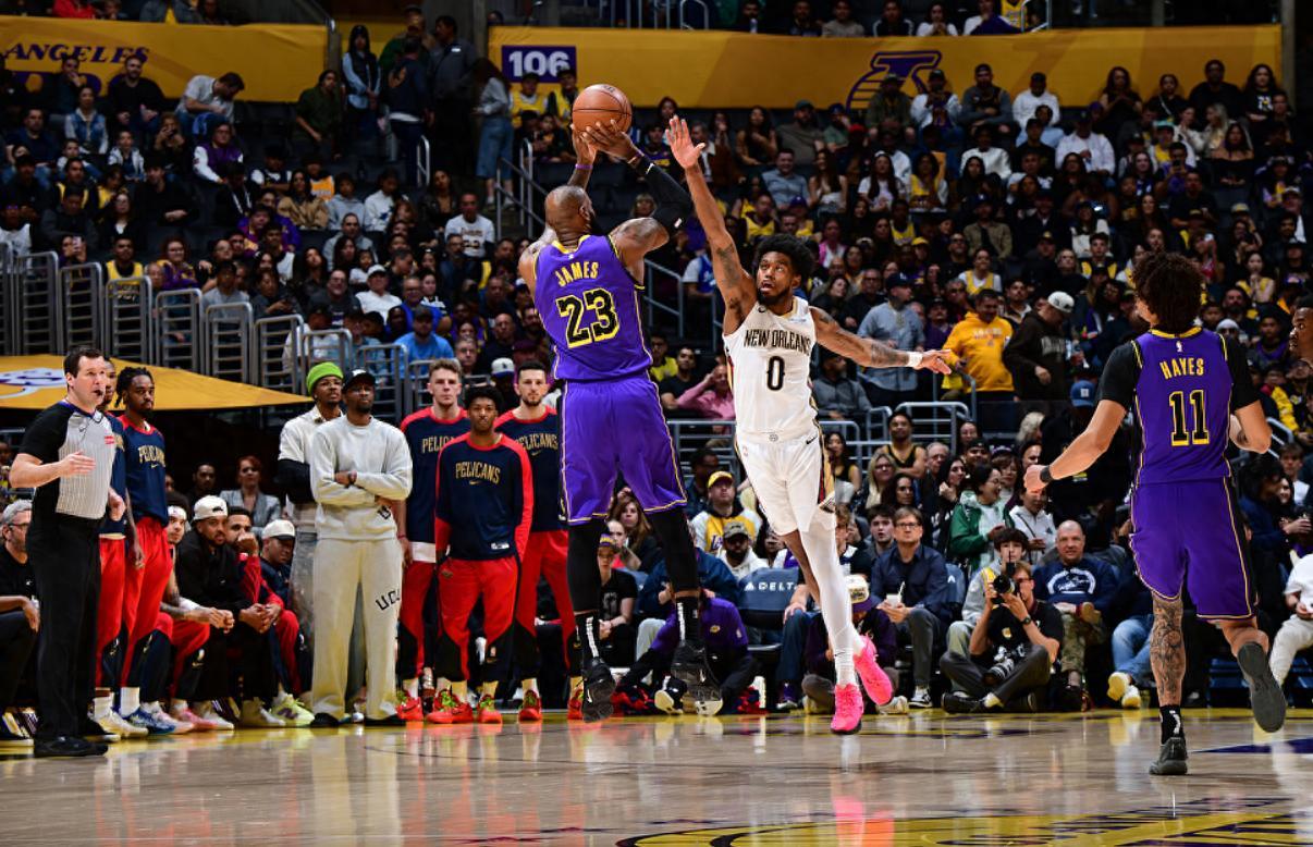 北京時間4月5日,湖人以124-108擊敗鵜鶘避免連敗,40歲的勒布朗第二節就開始進入狀態,第二節單節10分,末節單節14分,詹姆斯等於只在第二節與末節發力,全場比賽27分8助攻,他還是延續了自己連續上雙紀錄,因爲掘金不敵勇士,湖人再度回到西部第三,還與掘金拉開0.5個勝場。
