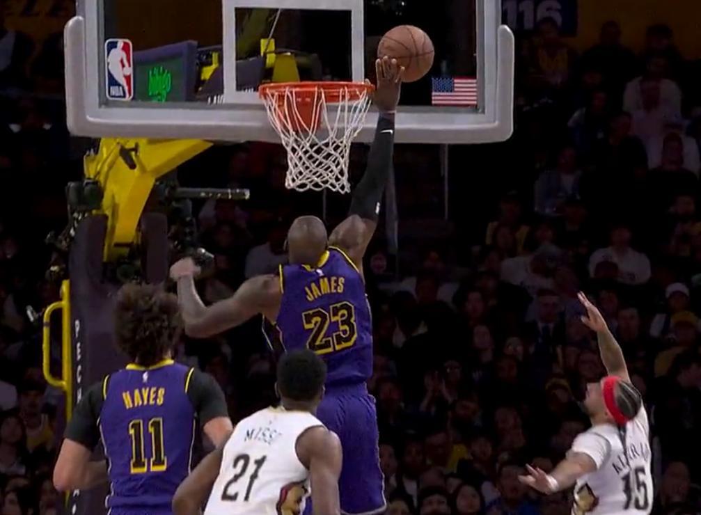 末節,開場詹姆斯就造犯規漲分,老詹空中接力暴扣後已經拉開到15分,鵜鶘只能暫停,末節詹姆斯6中5+罰球4中4拿到14分1助攻,全場比賽27分8助攻0籃板2搶斷。(裏夫斯30分7助攻6三分,東契奇35+6+6)