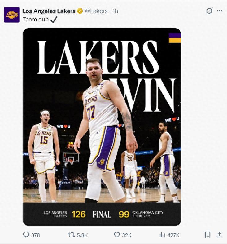一覺醒來,湖人126-99狂勝雷霆拿到二連勝,這還是那支輸公牛、籃網的湖人嗎?這還是那支聯盟第一的OKC嗎?上半場打完湖人就已經建立22分的優勢,雷霆在主場是一點氣魄都沒有,SGA全程被盧卡壓着打。