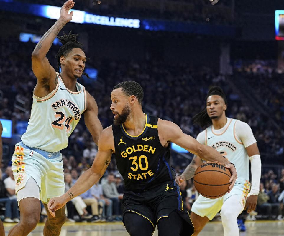 開場勇士打出一波9-0的高潮,馬刺作爲擺爛的球隊一下子有些懵,馬刺暫停後追到14-22,首節打完勇士還是領先9分。庫裏首節7分1助攻,巴特勒首節7分,庫明加首節7分,勇士首節命中率高達52.2%,三分命中率42.9%,勇士進攻打得挺好。