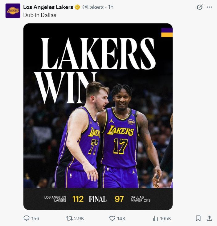 湖人112-97大勝獨行俠,這場比賽東契奇拿到45+8+6+4搶斷,詹姆斯末節13分3籃板全場27分7籃板,湖人擊敗獨行俠後拿到49勝31負鎖定西部前六,再贏一場就可以鎖定西部前三,獨行俠失利後還沒有鎖定附加賽,但只要太陽不敵雷霆就鎖定附加賽。