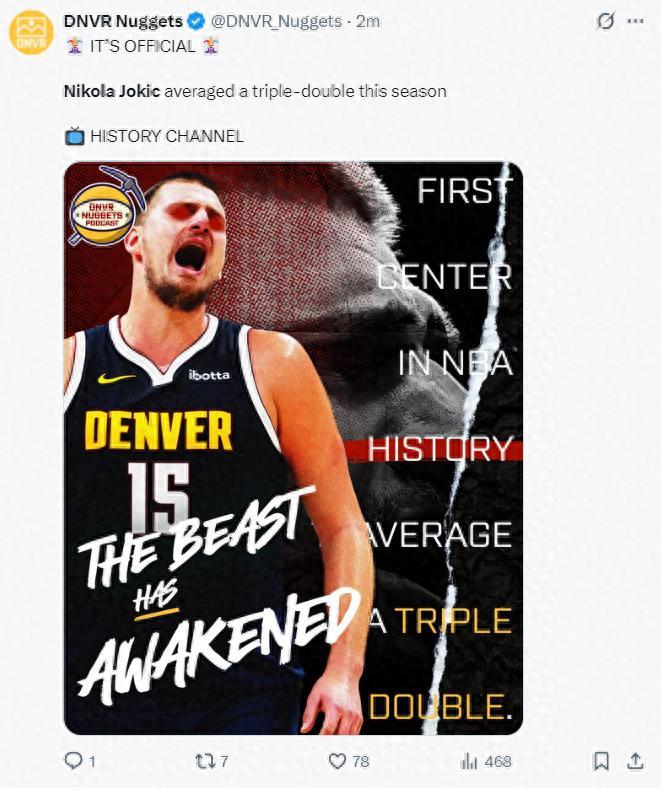 北京時間4月12日,掘金VS灰熊。這場比賽約基奇只要送出4個助攻就鎖定場均三雙,上半場打完約基奇就已經完成了4個助攻,他已經確定完成場均三雙成爲歷史第三人,最後兩戰他如果能拿到73分,他可以完成場均30+三雙。