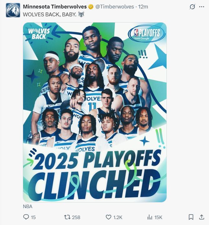 在森林狼擊敗爵士後他們已經鎖定了一個西部第六的席位,愛德華茲全場比賽43分6籃板5助攻3搶斷1蓋帽,聯盟取消他的第一個技術犯規太重要了。季後賽首輪湖人3VS森林狼6。