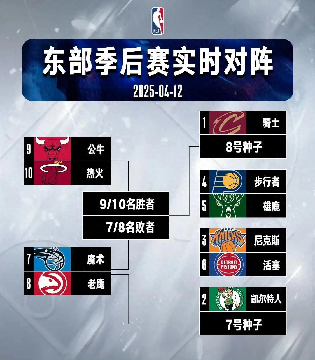 附加賽對陣:魔術VS老鷹(兩條命)、公牛VS熱火(輸球就回家)。