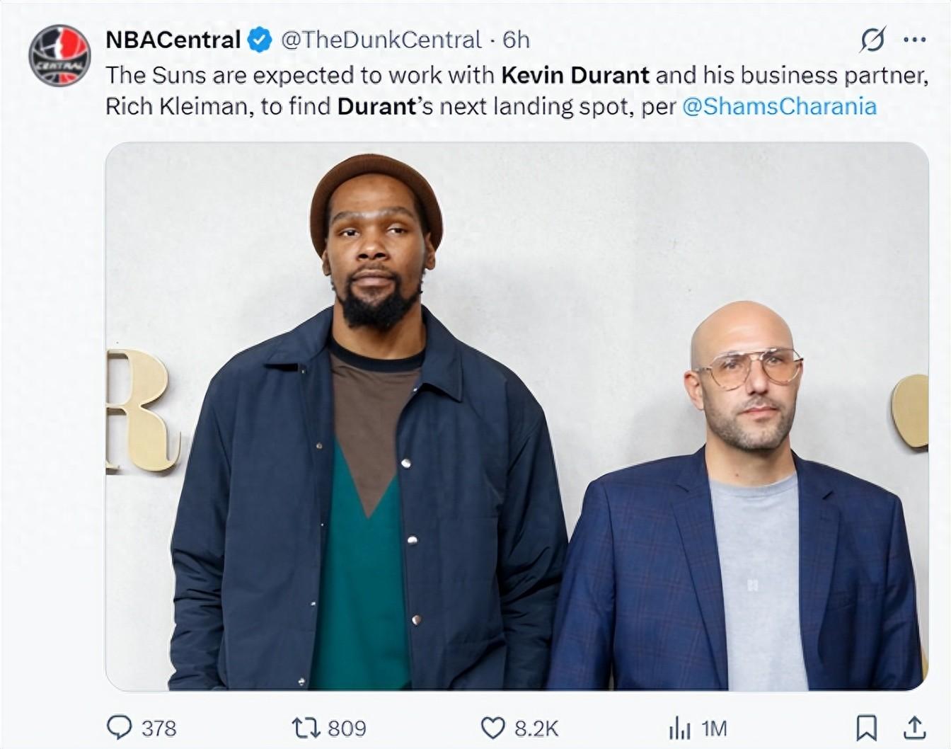 北京時間4月15日,根據NBA記者Shams的報道,太陽隊將在休賽期交易掉凱文-杜蘭特,KD會跟裏奇-克萊曼合作找尋下一支加盟的球隊。