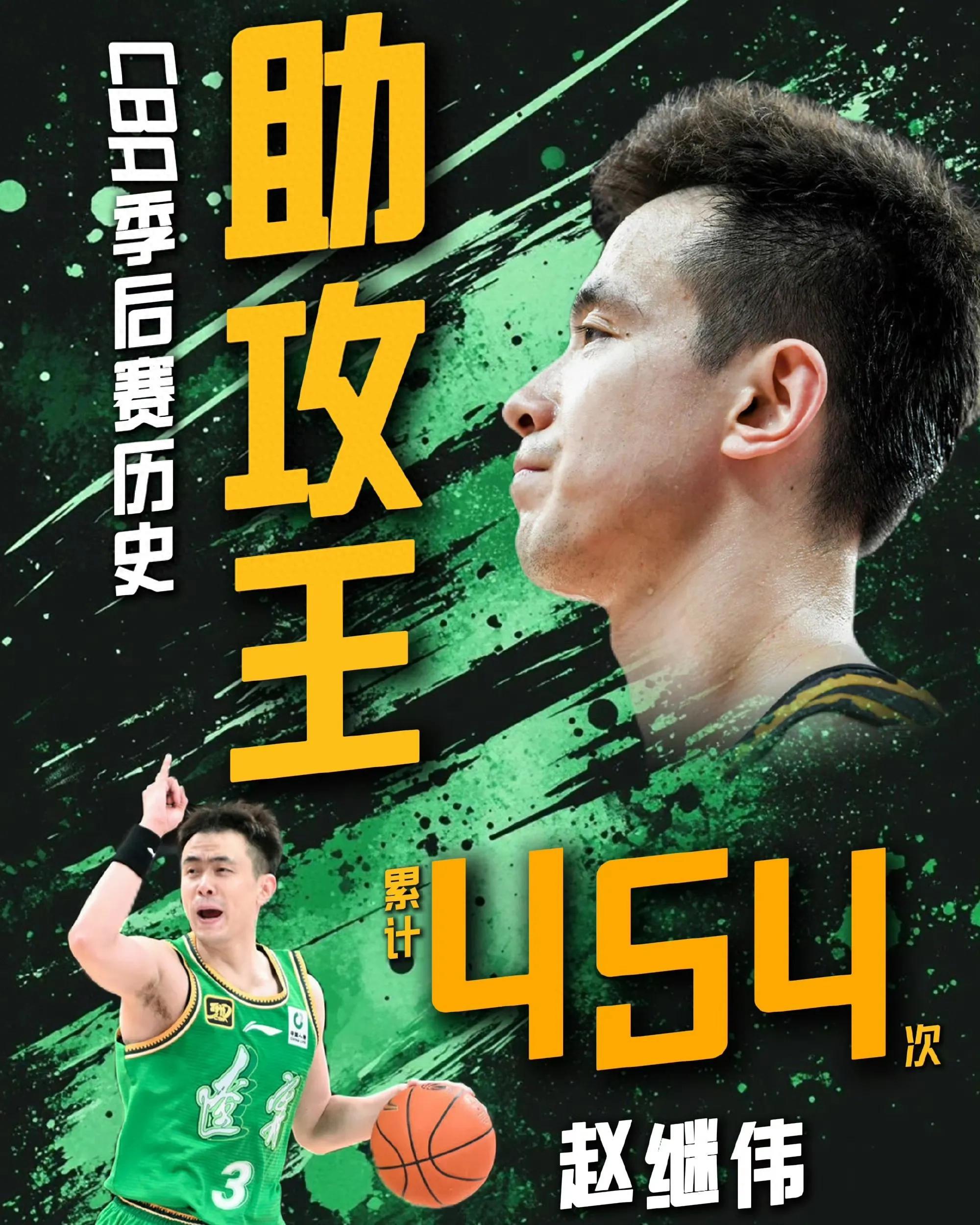 回顧遼寧男籃過去兩場季後賽,球隊發揮最出色的,當屬後衛趙繼偉,截至目前,趙繼偉場均可以貢獻24.5分4.5籃板6.5助攻3.0搶斷,場均可以投進六粒三分球,並且在昨晚趙繼偉拿到十次助攻之後,其職業生涯季後賽助攻總數達到了454次,超越了其前隊友哈德森,位列CBA聯賽季後賽歷史助攻榜的首位。