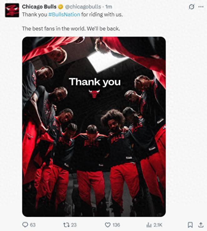 北京時間4月17日,東部第九的公牛被東部第十的熱火以下克上了,而且還是一場慘敗,公牛這個主場優勢看起來毫無作用,懷特被熱火鎖死,吉迪的外線軟肋被無限放大,這支年輕的公牛攻防都很拉胯。公牛官方已經致謝球迷了。
