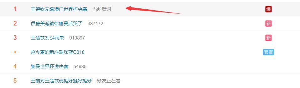 賽後王楚欽無緣澳門世界盃決賽登上了熱搜榜第一的位置,排在第二的是伊藤美誠被蒯曼逆轉後哭了,蒯曼是完成驚天逆轉,王楚欽是被驚天逆轉,這或許就是抗壓能力的差距吧。